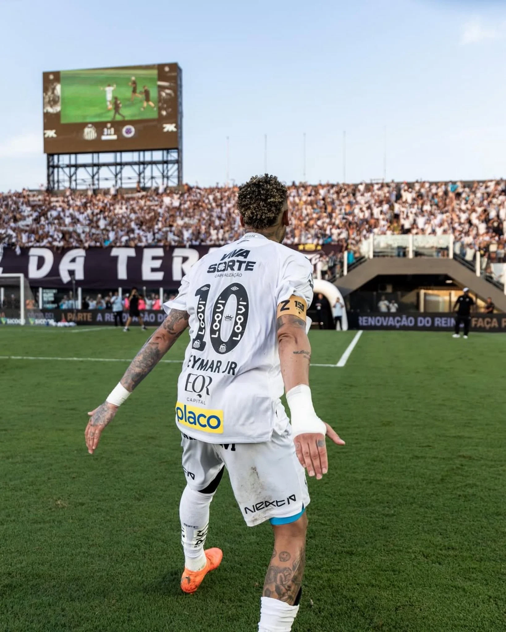 Neymar da Silva Santos Júnior, ìdàgbàsókè tí a mọ̀ sí Neymar, ṣe ìdàgbàsókè Santos lọ́wọ́ ìsọpadà ní ìdàraya ìrònúpìwàdì ní ìlú Santos, Brazili ní ọjọ́ Àìkú, ọjọ́ kẹjọ, oṣù kejìlá, ọdún 2025, pẹ̀lú ìparun 3-0 lórí Cruzeiro tí ó wà ní ìpò kẹta.